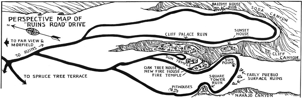 An important area is Navajo Hill, 15 miles from the Park Entrance (refer to perspective map on page 4). The Park Visitor Center is located here. This is the junction of the Wetherill and Chapin Roads.
