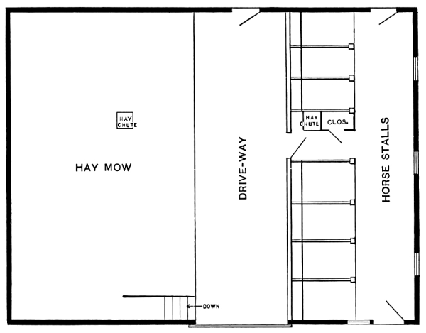 The floor plans submitted by “S. H.” are very good in design and arrangement, save that the hay chutes are made to appear directly over one of the main girders. Of course, this he would discover and rectify. Should it be difficult to obtain 8 × 8 stuff for posts and 8 × 10 for girders, the former may very easily be constructed of two 2 × 8’s and two 2 × 4’s, box pattern, thus saving something in materials and risk from dry rot. The girders might be made of two 4 × 10’s, or four 2 × 10’s, leaving an air space of 2 inches in the middle and saving the necessity of making mortises.