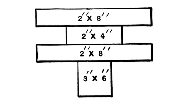 Changes and variations in plans need cause no loss of timber, as is certain to be the case where a bill of materials has already been placed on the ground. If a piece of timber is too long the piece cut off is used at some point, though perhaps not over 18 inches in length and containing only 2 or more feet of stuff. Suppose we cut off 18 inches of an 8 × 8 we have lost 8 feet of lumber, which is worthless for any purpose save for fire wood. If a given piece is too short it is spliced in a moment’s time and no loss of strength is sustained. In an old style framing if a piece was too short it required considerable labor to remedy the matter, and a loss of both timber and strength was sustained. [Pg 7]