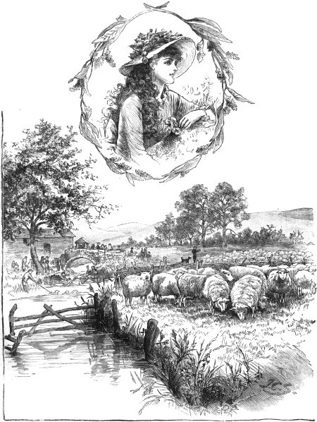 Poor, patient sheep! They take their sufferings in very good part, and submit meekly enough to the inevitable ordeal, basing a protest as feeble as it is useless, the older and wiser ones knowing that this washing is but a preliminary to the still more disagreeable ceremony of shearing to be performed a fortnight hence, as soon as the wool is dry. And Fairy, fascinated by the picturesque scene, could not be persuaded to move when Mrs. Shelley was forced to go home to prepare some dinner—a useless labour, Fairy declared, since there would be no one to eat it, for Charlie had taken his with him, and John and Jack were too busy to stop for dinner, and she herself was not hungry, and had no intention of going home till all John’s sheep were washed. But Mrs. Shelley had no idea of leaving a pretty young girl like Fairy alone among a crowd of people, so she proposed they should both go home and fetch some dinner and share it out in the field with John and Jack, a proposal Fairy jumped at; and an hour later the four were sitting on a bank under a hedge of blackthorn, with a carpet of buttercups and daisies at their feet, eating their simple meal as happy as it was possible for four people to be.