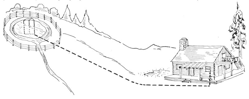 Even though your cabin has running water and a regular flush toilet, the danger of waste disposal is not entirely eliminated. Garbage and refuse of all kinds are harbors for germs and flies can quickly spread disease germs gathered from such sources. The location of the water supply in relation to sewage disposal is of greatest importance, and it is not enough that the water source be above the distribution field of the sewer. It is a good idea to consult the nearest forest ranger, or some other person who is well acquainted with the locality, before making any such installations.