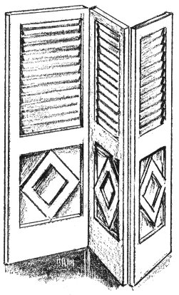 Refinished shutters from old ranch houses make ideal and attractive screens for use in vacation homes. Put them together with small brass two-way hinges, patch up old cracks and holes with plastic wood, scrape and sandpaper all of the old finish until the wood is in fair condition. You can then give the shutters any type of finish that will fit in with your decorative scheme.