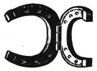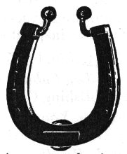 These horseshoe hinges will add interest to the cabin door. The nails shown are ornamental, the necessary support being provided by strong screws countersunk in the iron.