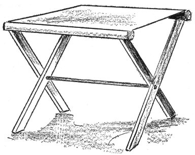 This portable and collapsible table is easy to make and a great convenience in the kitchen or at the side of the barbecue when you are entertaining outdoors. You can make it of rustic materials or of ordinary lumber. Cover the top with strong canvas or a good grade of oilcloth, or both.