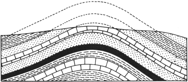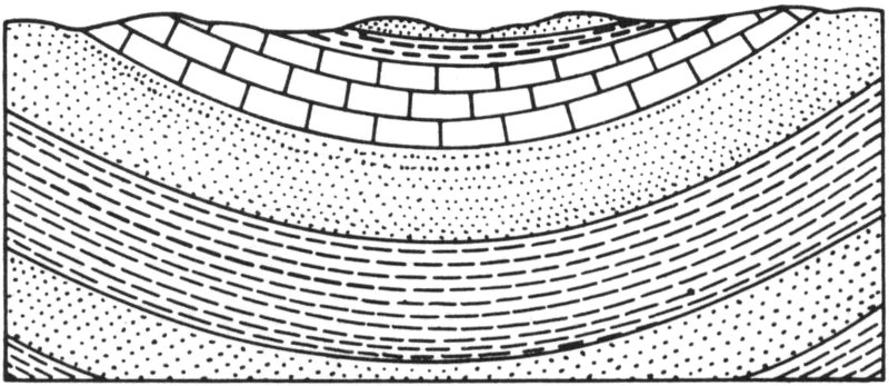 Figure 4—When rocks are upfolded and the surface is eroded, the older rocks are exposed at the crest of the dome or anticline.