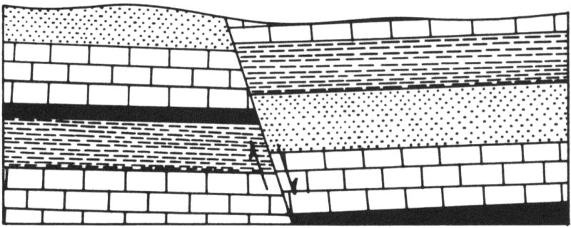 Figure 5—When rocks are faulted by earth stresses, the layers of rock are displaced or offset.