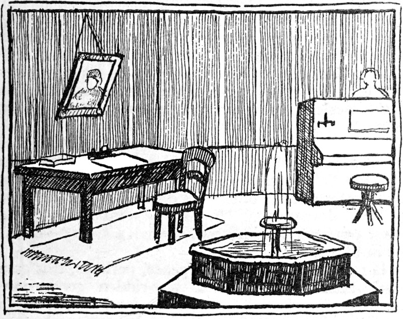 “Among Loti’s collection of priceless treasures, rifled from every corner of the East, Antoine sought in vain for somewhere to place his hat! Finally, he hooked it on to an Eastern idol, and their talk began. In a few moments, however, there was a pause, for the astonished dramatist caught sight of the offending headgear suspended, as he supposed, in mid-air. However, a closer look revealed that it was resting upon a thin stream of water. The Eastern idol was a fountain!”