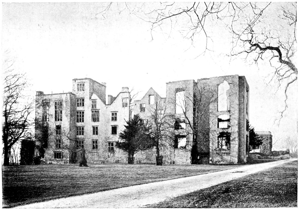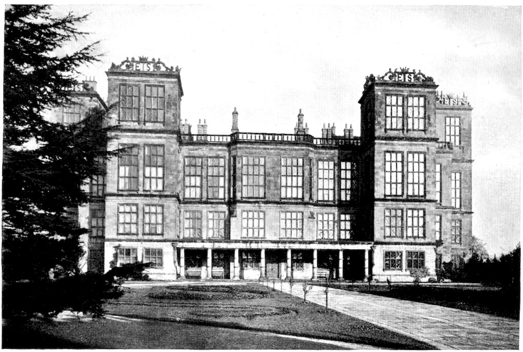 361Set high upon a fine hill in the centre of a park, encircled with rolling country, and facing east and west, the great, old windows of Hardwick look out above colonnades upon a new world. At no great distance are mines like those which have spoiled Bolsover and Worksop. The masons still labour at the stonework of Hardwick, for storms have worn the elaborate scrolling of those four proud towers, and the flagged pathway from gate to house-door is pitted and hollowed by frost and rain and the feet of generations. And still it stands, a monument and a living record of one who knew in her strange, active life much grief and much joy, who loved flattery and self-assertion and the struggle for individual development, and yet could write in letters of stone over the door of her presence-chamber: “The conclusion of all thinges is to feare God and keepe His commaundements.”