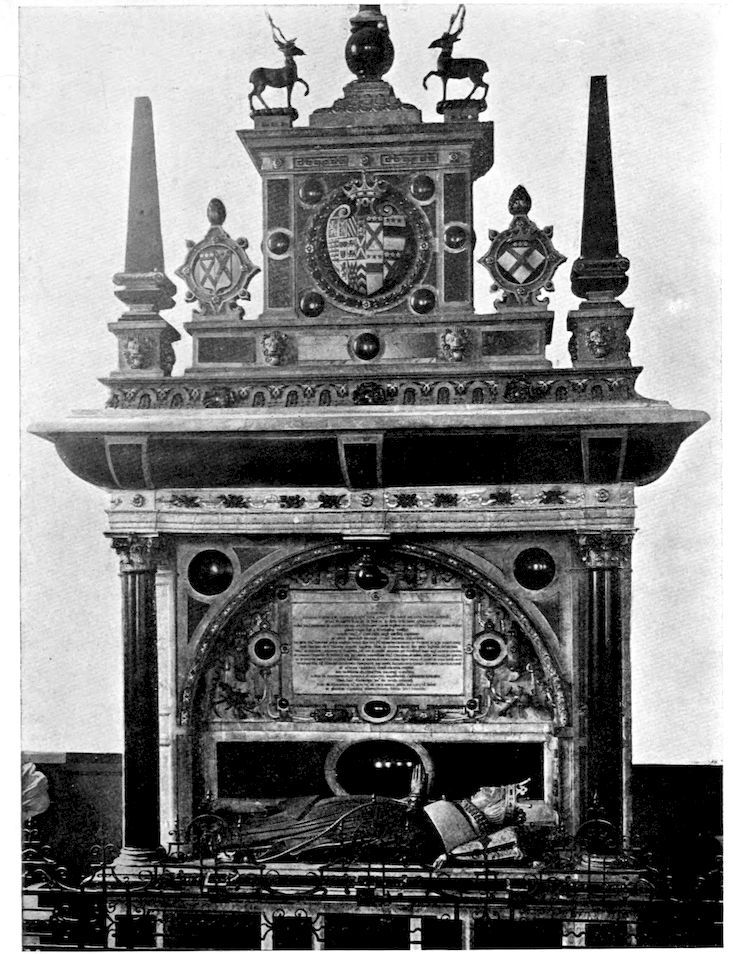 363Tobie Matthew, Archbishop of York, preached a fine funeral sermon upon this “costly Countess,” in which she was likened to the ideal virtuous woman of Solomon, while Hunter, on the other hand, ironically suggests that Massinger based his character of Sir Giles Overreach upon her. Lodge has termed her violent, treacherous, tyrannical. Such in many ways was the nature of England’s Elizabeth. Yet both women were makers and builders, often blind, always resourceful, achieving immense results in their several capacities. And since the royal symbol of the one is the stately Tudor rose, so also shall the lovely “redolent aeglantyne” of the motto of the other entwine and weave through the ages the memory of all that was finest in the amazing Lady of Hardwick. With that sweet savour—regarding it as the final evaporation of her complex, rampant, thorny, vital nature—let all harsher thoughts of her now be chased away.