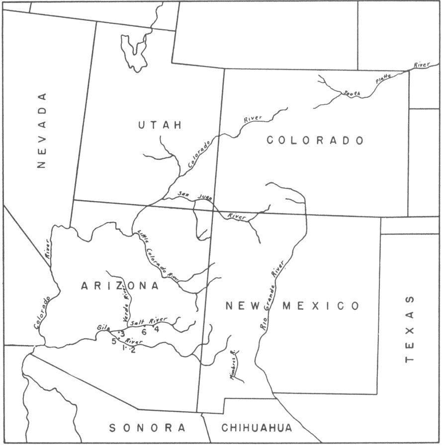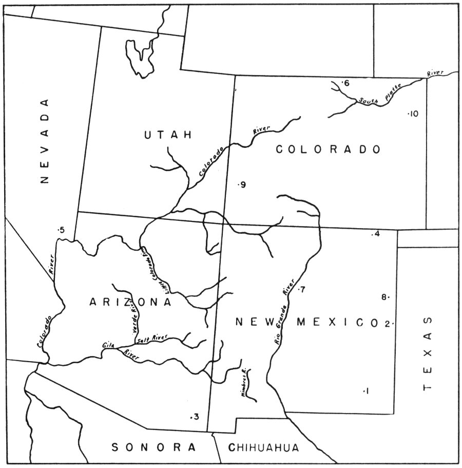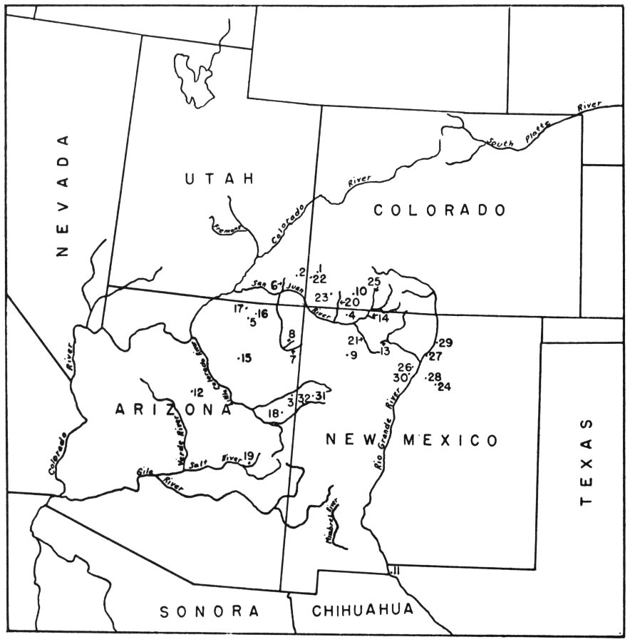 Fig. 2—Map of the Southwest showing sites referred to in Chapter II.