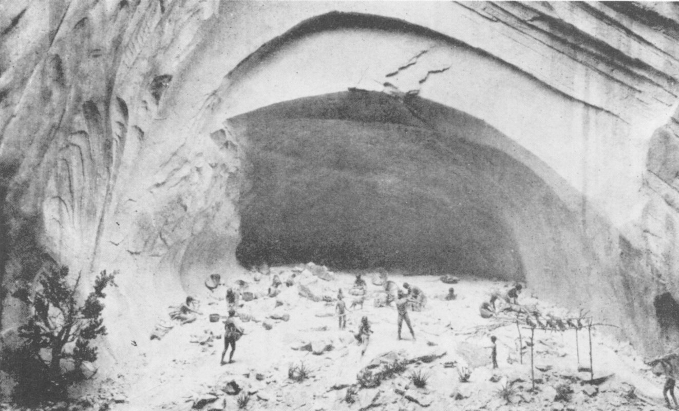 We may now return to the Basketmaker culture as archaeologists 31 have reconstructed it from the evidence which they have painstakingly dug out of the dust and ashes of rock shelters which had not echoed with the sound of human activity for many centuries. The problems which these ancient people faced stagger the imagination of modern man. They had no metal, no pottery, no cotton or wool, no draught animals. Really all they did have was their own ingenuity to wrest the necessities of life from a none too favorable environment. It is remarkable how, by utilizing wood, bone, stone, plant fibers, and even their own hair, they not only produced all that they needed to survive, but also provided a base from which arose the high culture which culminated in the great communal dwellings of later times.