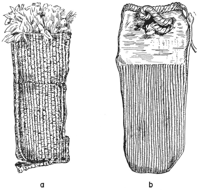 Clothing and shelter are, of course, subordinate to man’s main physical need—the need for food. In the period in which we first find evidence of the Basketmakers they were no longer solely dependant on hunting and the gathering of wild foods but had two cultivated crops, corn and squash. Where the Basketmakers gained their knowledge of agriculture is not known with certainty. Everything seems to point to the first domestication of corn far to the south in Central[126] or South America and it Is believed that knowledge of corn and its cultivation spread to the north by diffusion.
