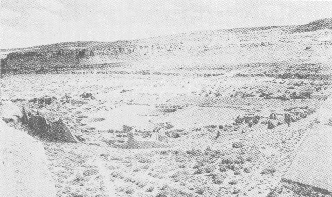 ORAIBI on the third or northwesternmost Hopi mesa, materially unchanged for over 600 years, and in a general sense, the other older HOPI INDIAN pueblos—WALPI on First Mesa, SHONGOPOVI and MISHONGNOVI on the middle mesa—which have shifted their locations during the historic period from valley floors to mesa tops. The villages of Hano (Tewa) and Sichomovi on First Mesa, and probably also Shipaulovi on Second Mesa, are eighteenth century foundations. Hotevilla, Bakavi and New Orabi (Kikhochomovi) date from the break-up of Oraibi only about fifty years ago. Toreva and Polacca are purely modern towns. Good dirt roads to the Hopi country from Gallup, Winslow, and Flagstaff. No tourist accommodations.