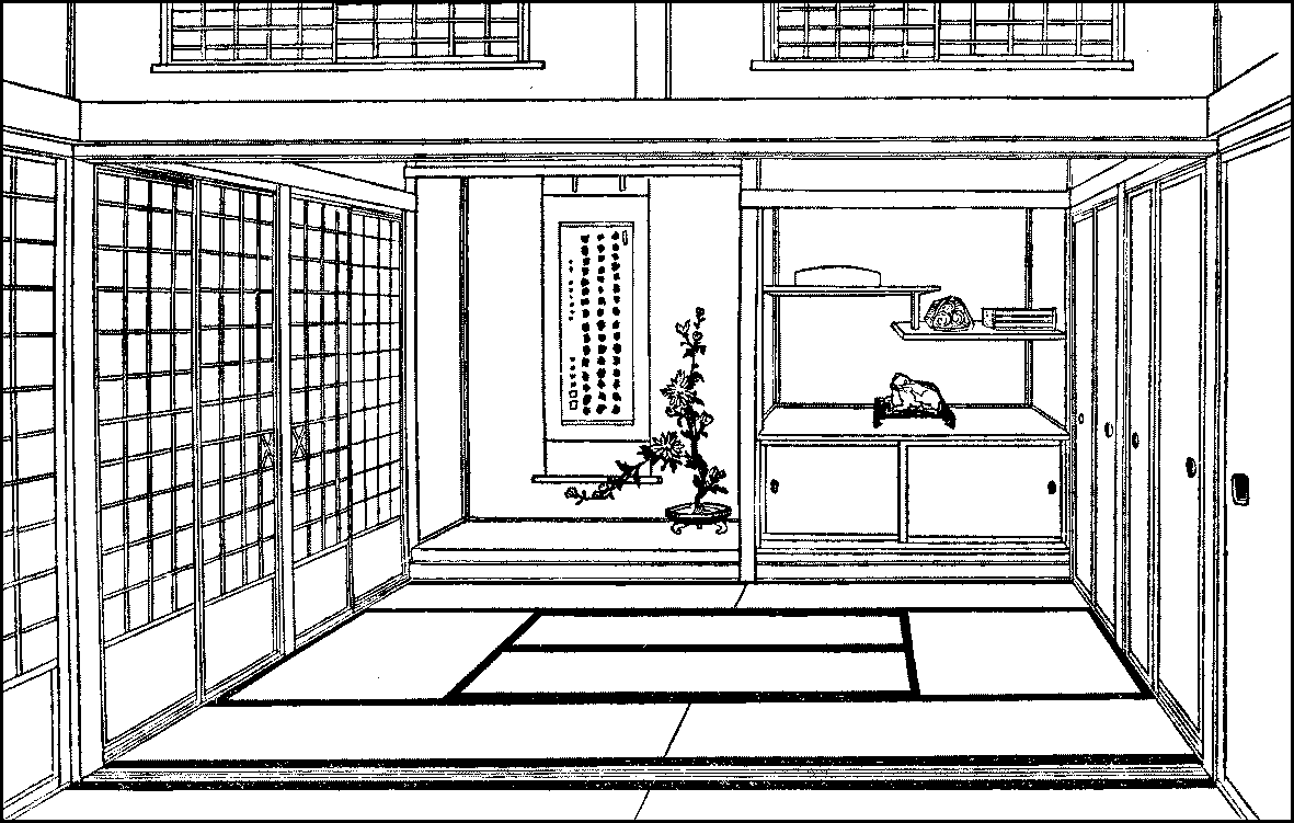 The sizes of rooms—The absence of furniture—Sliding-doors—Verandahs—Tenement and other small houses—Middle-sized dwellings—The porch and anteroom—The parlour—Parlour furniture—The sitting-room—Closets and cupboards—Bed-rooms—The dining-room—Chests of drawers and trunks—The toilet-room—The library—The bath-room—Foot-warmers.