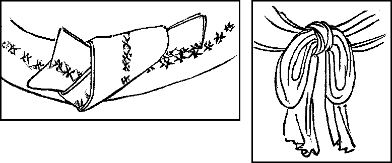 The wrestler appears in the arena without clothing. He has over his loin-cloth a wide, wadded cotton-belt adorned with twine tassels when he wrestles; but if he is a first-grade wrestler, he makes a formal appearance in the arena with others of the same grade before they commence their bouts, when he wears in addition an apron of heavy material richly embroidered with his professional name or some other distinguishing mark stitched in gold.