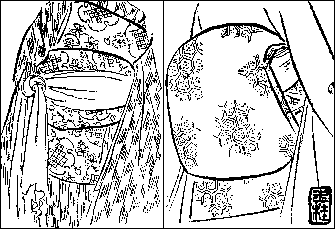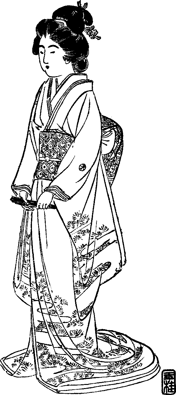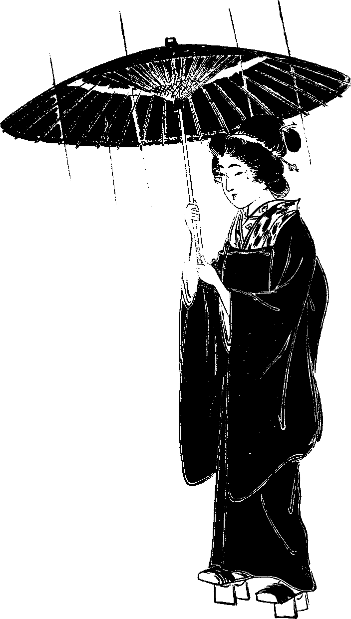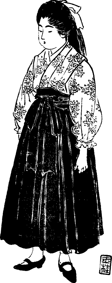 Attempts at Europeanisation—Difference between Japanese and foreign dresses—Expense and inconvenience of foreign dresses—Japanese dresses not to be discarded—How the female dress differs from the male—Underwear and over-band—Haori—Hakama—Obi—How to tie it—The dress-obi—The formal dress—Home-wear—Working clothes—The sameness of form—The girl’s dress—Dress and age.