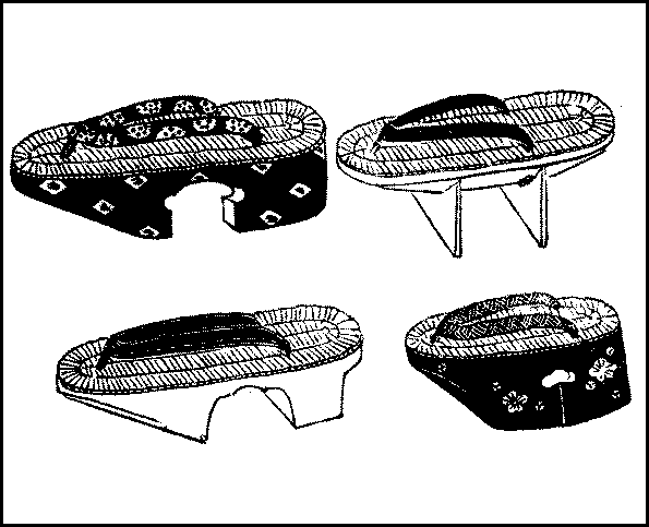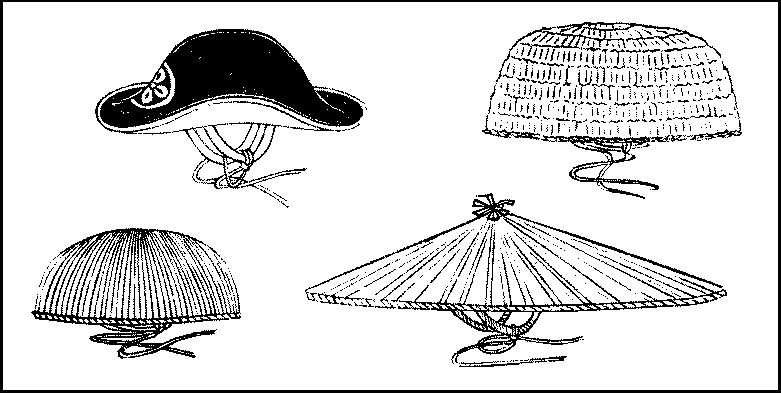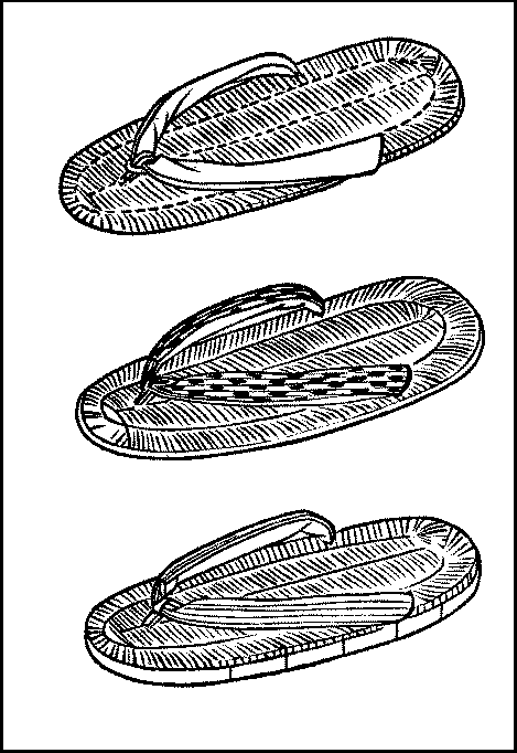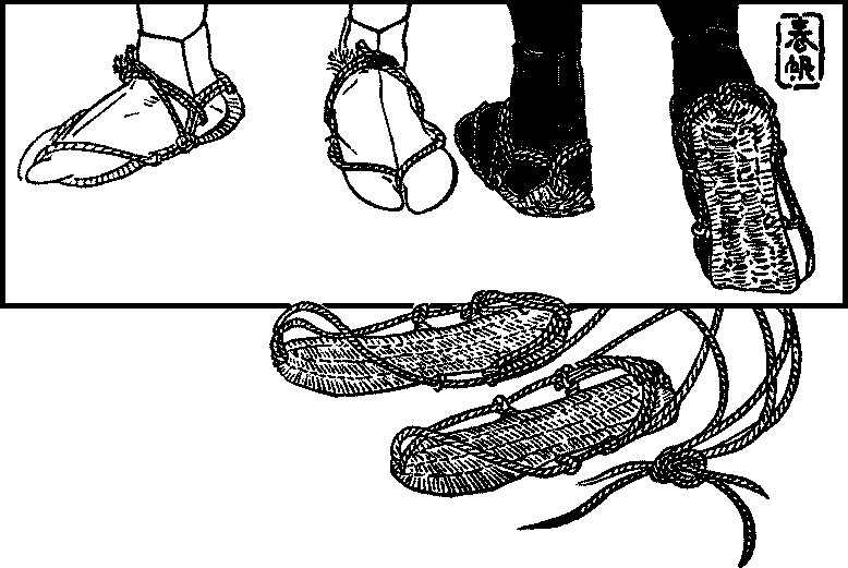 Boots and shoes versus clogs and sandals—Inconvenience of foreign footgear—Shoes and boots at private houses—Clogs and sandals able to hold their own—How clogs are made—Plain clogs—Matted clogs—Sandals—Straw sandals—Headgear—Woman’s hood—Overcoats and overdresses—Common umbrellas—Better descriptions of umbrellas—Lanterns—Better kinds of lanterns.