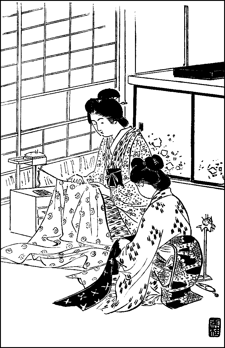 Japanese and foreign dress—Progress in the latter—Japanese clothes indispensable—Kimono—Cutting out—Making of an unlined dress—Short measure—Extra-sized dresses—Yukata—The lined kimono—The wadded kimono—Under-dress—Underwear—Obi—Haori—The crest—The uncrested haori—Hakama—Socks—How to dress Wearing of socks.