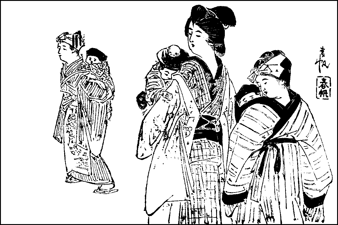 Child-life—Love of children—Desire for them—Child-birth—After-birth—Early days—The baby’s food—The “first-eating”—Superstitions connected with infancy—Carrying of babies—Teething—Visits to the local shrine—Toddling—Weaning—The kindergarten and primary school—The girls’ high school—The middle school—The popularity of middle schools—Hitting—Exercises and diversions—Collections.