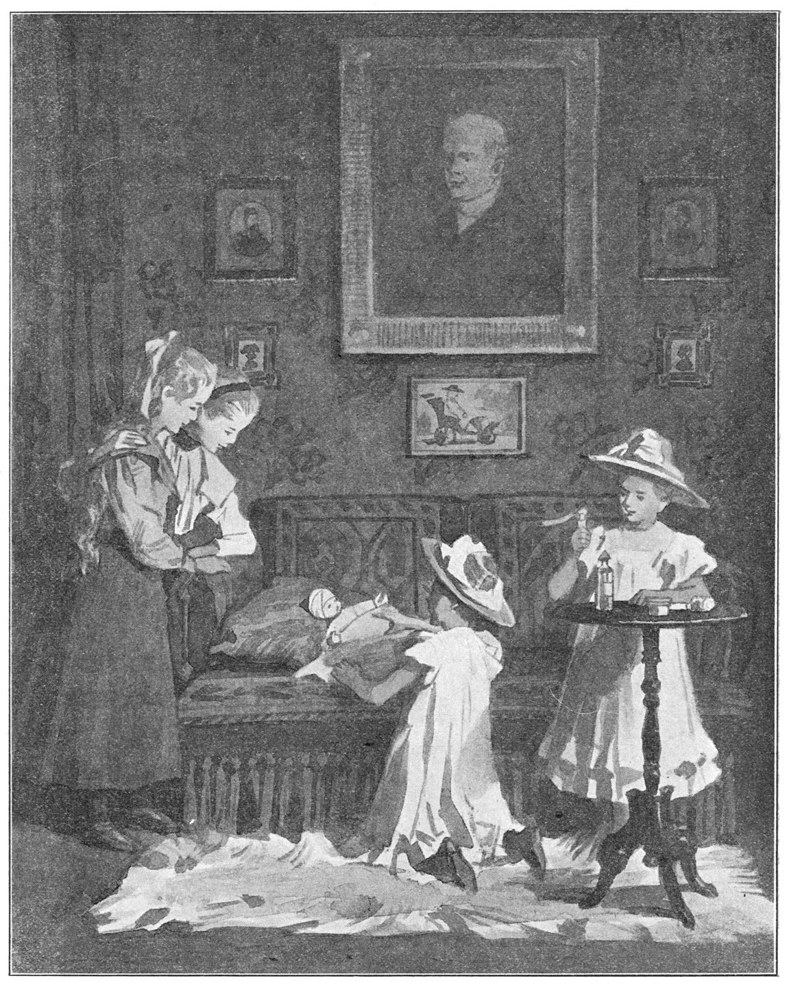 „Ik had niet durven hopen, dat het lieve kind ooit zou kunnen loopen; welk een geluk! laat ze nu niet te veel doen, ga gauw zitten mijn schat.”