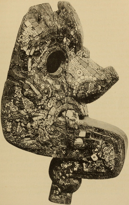 The writer has undertaken the present study of Mexican Turquois Mosaics in honor of the approaching opening to the public of the Museum of the American Indian, Heye Foundation, the only institution devoted exclusively to the study of the aboriginal American peoples ever established; and the proximate International Congress of Americanists to be held at Rio de Janeiro this summer. Owing to lack of time it has been impossible to obtain new photographic illustrations of all the specimens of mosaic-work in European museums, but the author desires to express his thanks to T. A. Joyce, Esq., for his courtesy in furnishing photographs of the examples in the British Museum. To Dr. Franz Heger, of the State Natural History Museum, Vienna, we are under deep obligations for photographs and description of the interesting Xolotl figure preserved in that Museum. Dr. S. K. Lothrop has kindly had photographs made of the objects of this class in the Prehistoric and Ethnographic Museum in Rome, and has made certain valuable observations concerning them. To Drs. A. M. Tozzer and H. J. Spinden special acknowledgment is due for their generous permission to illustrate the mosaics from Chichen Itza, thus anticipating their own description of the objects in the work now being prepared regarding one of the most important discoveries ever made in ancient America. The fine drawings are from the pen of William Baake, and the beautiful plates represent the best efforts of the Heliotype Company. Finally must be acknowledged the characteristic generosity of one of the trustees of the Museum, James B. Ford, Esq., who has made it possible for us to publish this paper, and to whom the Museum is indebted for its acquisition of the precious collection of Mexican mosaics which are now described for the first time.