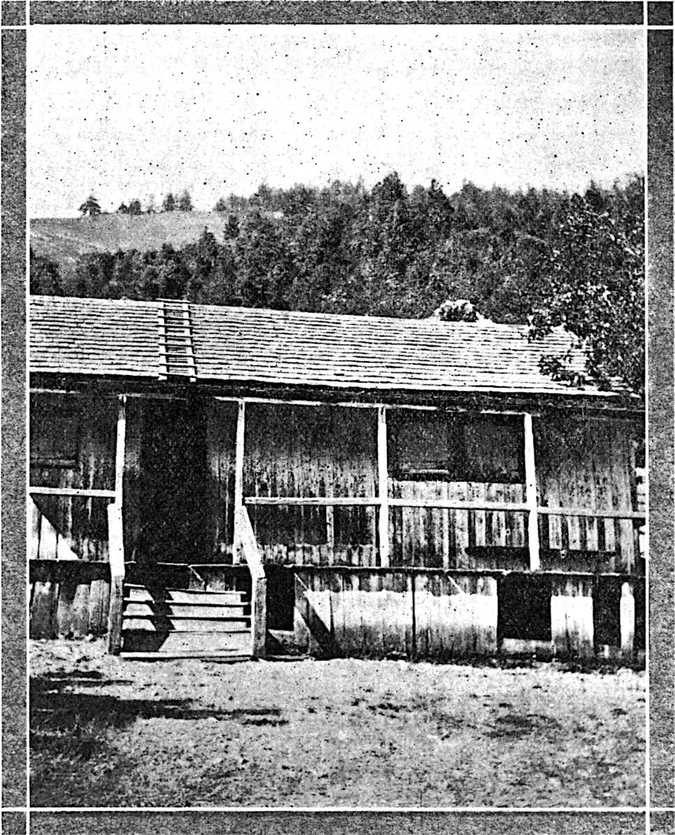 THE Old Klamath Bluffs Store, or fort, and in late years the Klamath Post Office, was built in 1855 or 1856, by a man named Snider. He conducted it as a trading post for Indians, soldiers and travelers alike. It was built of rough split lumber and strongly made of double walls with sawed blocks four inches thick placed between the walls, and was bullet proof, with port-holes so that a few white men could defend themselves against many Indians. This store is located twenty-four miles up the river from its mouth, and is about eighteen miles down the river from Weitchpec or the junction of the Trinity River, and something like forty miles below Orleans Bar on the Klamath. Orleans Bar was at one time the County Seat of Klamath County. The old store is on the north bank of the river on a bar that was formed in ancient times, and is high enough to make it safe from all high waters. It is a beautiful, sunny spot and on the line of travel up and down the Klamath river.