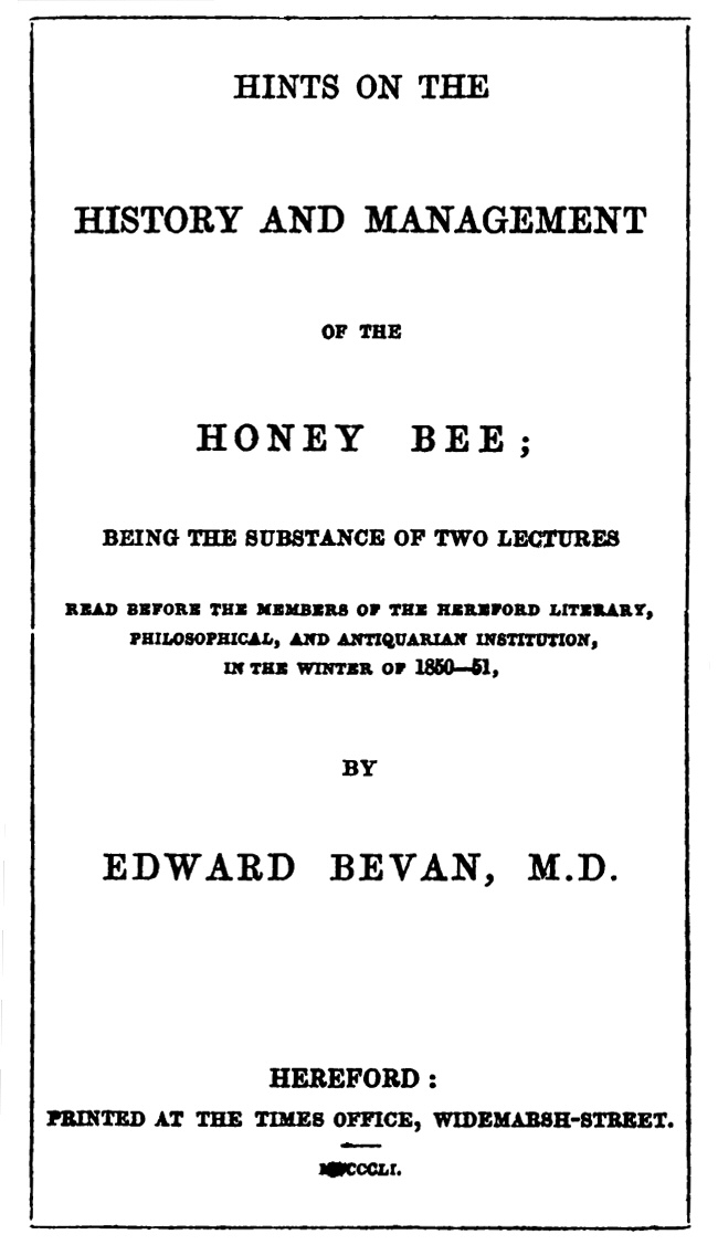 Dr. Bevan (the author of a well-known and admirable manual for apiarians) took as the theme of his paper the