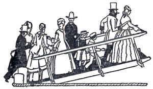 Then followed the bedlam of putting off. Yells, hoarse shouts, bells ringing, wheels churning the water to foam. Lively now! Cramp her down! Snatch her! Snatch her!