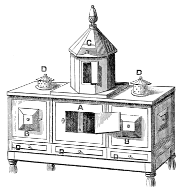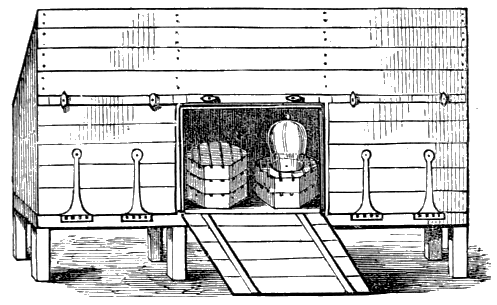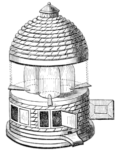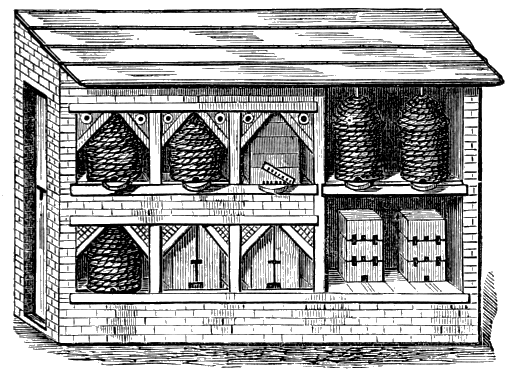 A very picturesque and efficient bee-shed is presented by Dr. Lardner, about twelve feet long and about nine feet high.