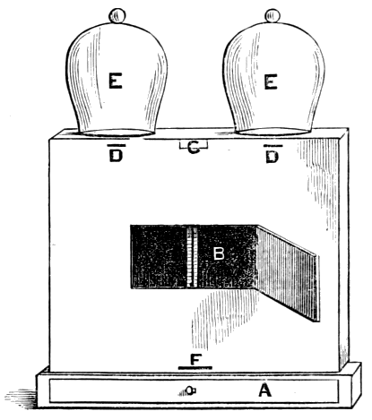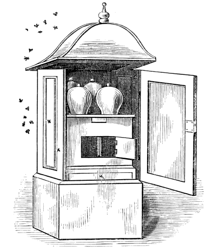 The antipathies of the bee are very curious. I have known one individual who was chased perpetually round the garden, and I have seen him obliged to rush through a hedge to escape his little tormentors. Their feuds were sometimes most violent, and I have had to remove a hive from one apiary to the other, a distance of half a mile, to preserve the bees. Your plan of the super-hives is excellent. Most of our hives were square, and all of wood. The straw hives proved a harbour for insects, and deprived us of the pleasure of watching the bees at work. We used large confectioners' glasses as supers, turned upside down. They were speedily filled, and we could ensure honey flavoured with the different blossoms, by placing the glass during the season of the orange-blossom, or heliotrope, &c., &c.