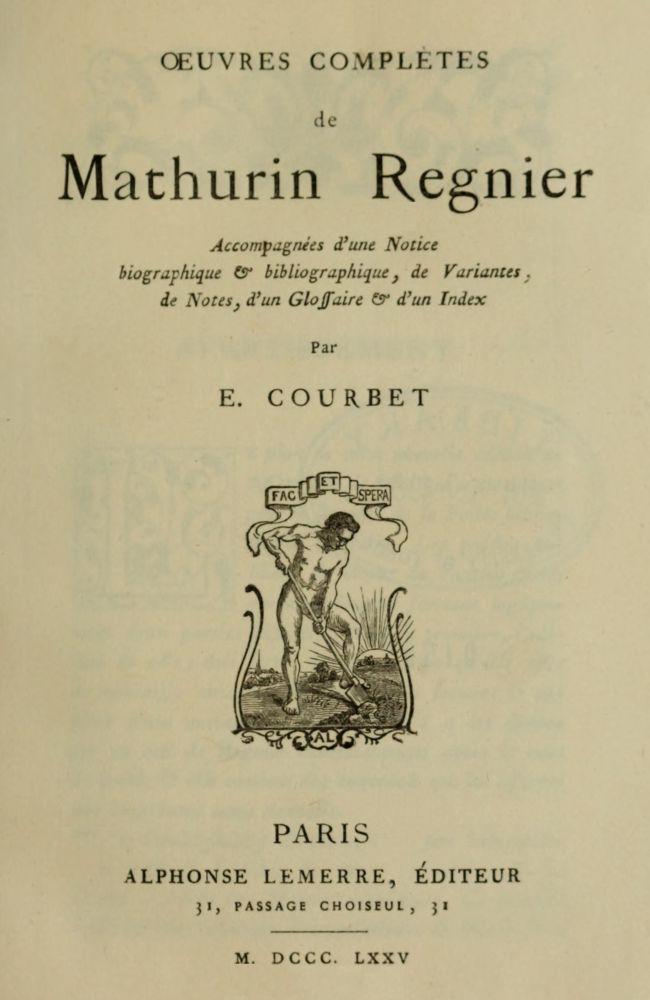 | MATHURIN REGNIER. Œuvres complètes, avec Notice