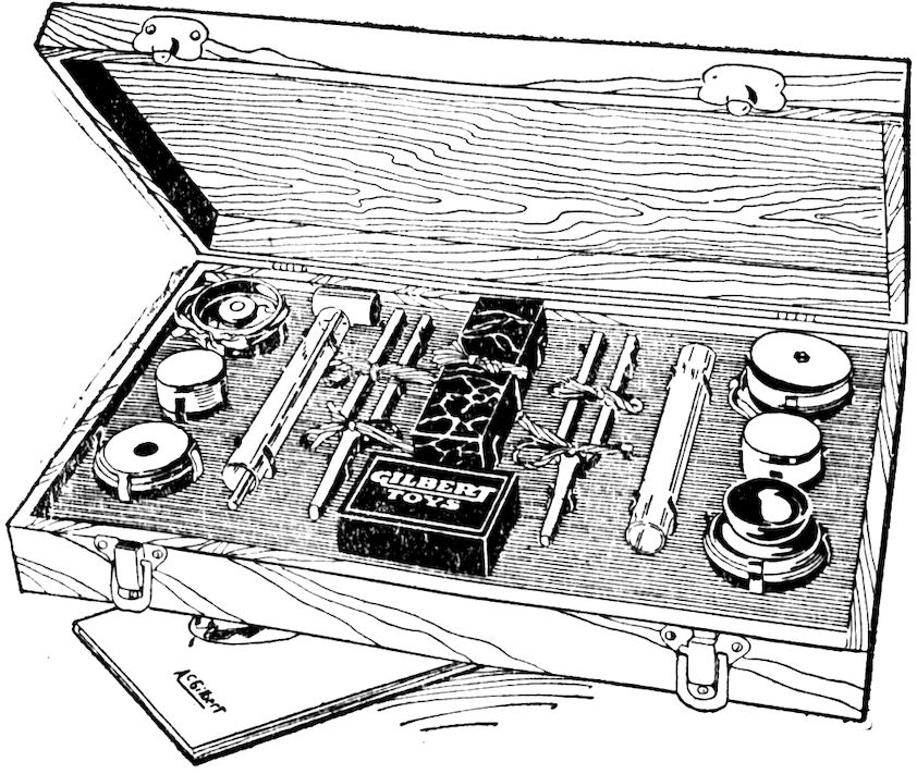 With one of these outfits you can find out just what sound is—how it is produced—why some pianos sound better than others—why a violin produces a musical tone, and many other things, including a number of startling table rapping tricks with which you can astonish your friends. A big book of instructions tells you how to perform every experiment. Get one of these outfits today. The best toy dealer in your town should have it; if not, write us and we’ll tell you where you can get it.