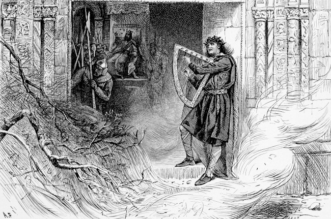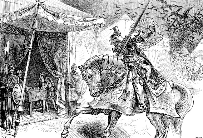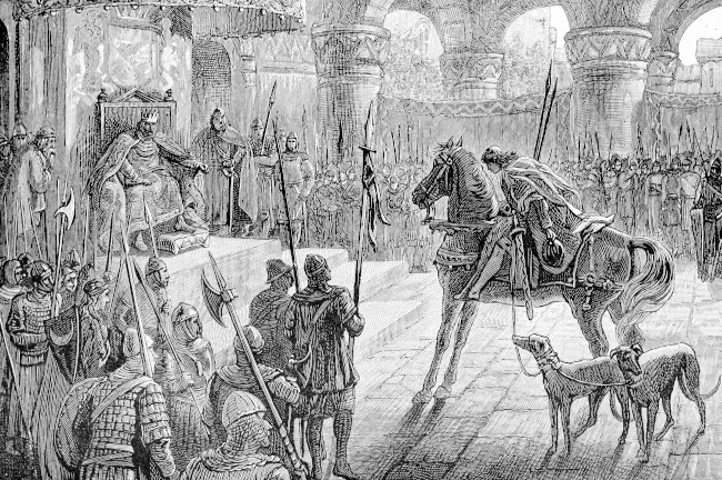 Kilhwch riding into Arthur's Hall