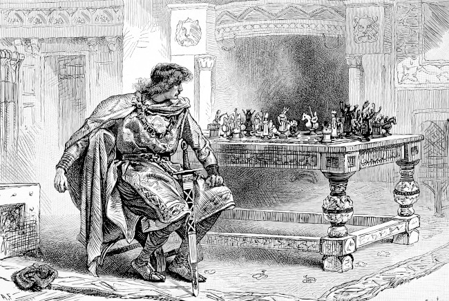 And immediately the emperor set forth with his army. And these men were his guides. Towards the Island of Britain they went over the sea and the deep. And he conquered the island from Beli the son of Manogan, and his sons, and drove them to the sea, and went forward even unto Arvon. And the emperor knew the land when he saw it. And when he beheld the castle of Aber Sain, "Look yonder," said he, "there is the castle wherein I saw the damsel whom I best love." And he went forward into the castle and into the hall, and there he saw Kynan the son of Eudav, and Adeon the son of Eudav, playing at chess. And he saw Eudav the son of Caradawc sitting on a chair of ivory, carving chessmen. And the maiden whom he had beheld in his sleep he saw sitting on a chair of gold. "Empress of Rome," said he, "all hail!" And the emperor threw his arms about her neck; and she became his bride.