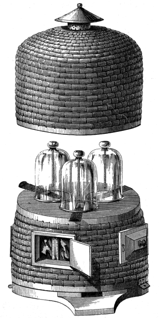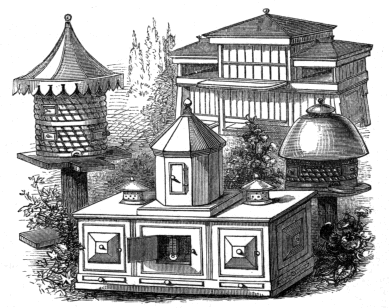 Natural Abodes of Wild Bees—Taking Honey from Roof of House—Straw Skeps—Cottager's Hive—Supering—Nutt's Collateral Hive—Village Hive—Woodbury Hive—Abbott's Hives—Sectional Supering—Stewarton Hive—Carr-Stewarton Hive—Observatory Hives—Bee-houses.