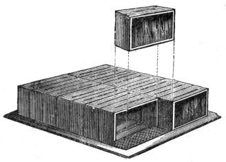 Troughs—Dangers of this Method—Bottle Feeders—Cheshire's Feeding Stage—Neighbour's Can Feeder—The "Round Feeder"—Autumn Feeding—Spring Feeding—Uses of Precautions—Summer Feeding of Swarms—Flour-cake—Barley-sugar or Sugar-cake—Mr. Hunter's Recipe.