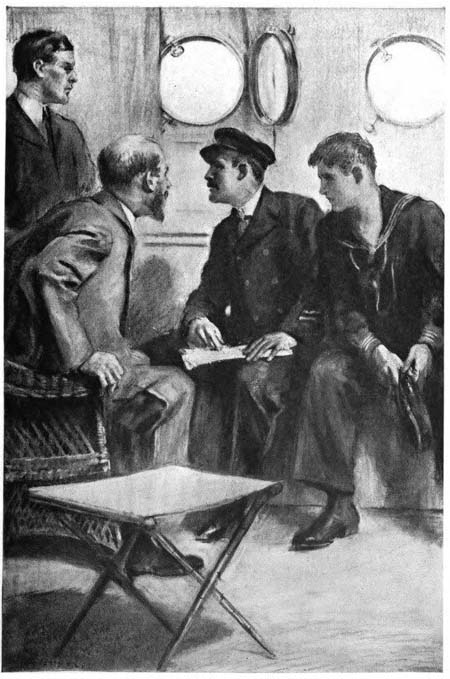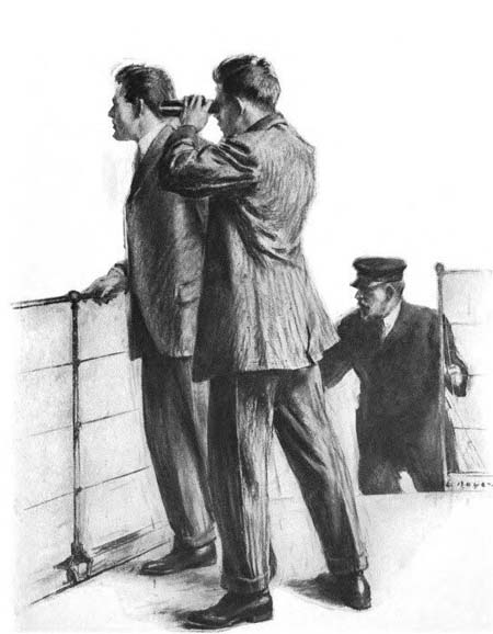 “Here’s what we’ve been waiting for,” O’Neil called out at last from the wireless room, his voice joyful and triumphant, while Phil met the boatswain’s mate in the salon waving a paper on which had been roughly penciled a message just intercepted.