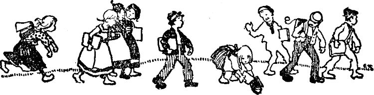 »Der Neue.« Zimplichs Max brüllte es laut, und Ach- und Ohrufe tönten die Apfelstraße entlang. Auf einmal dachten sie alle an den neuen Lehrer, auf den sie ungeheuer neugierig waren. Ob er wohl sehr streng war? Strenger als Herr Hiller sicher! Und nun würden die schönen vielen Feiertage ein Ende haben, denn Vater Hiller hatte zuletzt nicht mehr soviel unterrichten können, er war lange leidend gewesen.