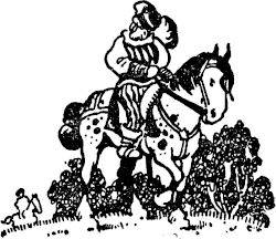 »Also die Geschichte ist so: Herr Arnulf hatte einst gehört, daß ein Kaufmann mit kostbarem Geschmeide von Köln am Rhein käme, an des Markgrafen von Meißen Hof wollte er. Den muß ich fangen, dann hat alle Not ein Ende, dachte der Schelm von Steinach. Er war nämlich nicht sehr begütert, und seine Standesgenossen pflegten zu sagen: ›Arm wie der Schelm von Steinach!‹ Herr Arnulf legte sich also auf die Lauer mit seinen Mannen, und richtig, der Kaufmann mit seinen Leuten zog auf der Straße einher. Es ging[6] wie immer in solchen Fällen: mit lautem Geschrei überfiel der Ritter mit seinen Knechten den Zug, der Kaufmann schrie und jammerte, seine Leute schrieen und jammerten noch lauter; es geschah aber keinem ein Leid, und der Kaufmann mit den Seinen wurde auf die Burg gebracht. Inzwischen ging ein armseliges Bäuerlein mit einem Sack auf der Landstraße dahin. Es grüßte demütig, und der Ritter, froh über den reichen Fang, warf ihm ein paar Batzen zu. »Was trägst du denn da?«