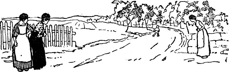 Ritsch, ratsch verschwanden die Beine, wie reife Äpfel plumpsten die Buben von den Bäumen, aus dem Graben kamen die Mädel heraus, und heidi ging es nach rechts und nach links über die Stoppelfelder hinweg. Im Umsehen lag die Apfelstraße verlassen da, nur eine auffallend große Frau schritt dem jungen Lehrer entgegen.