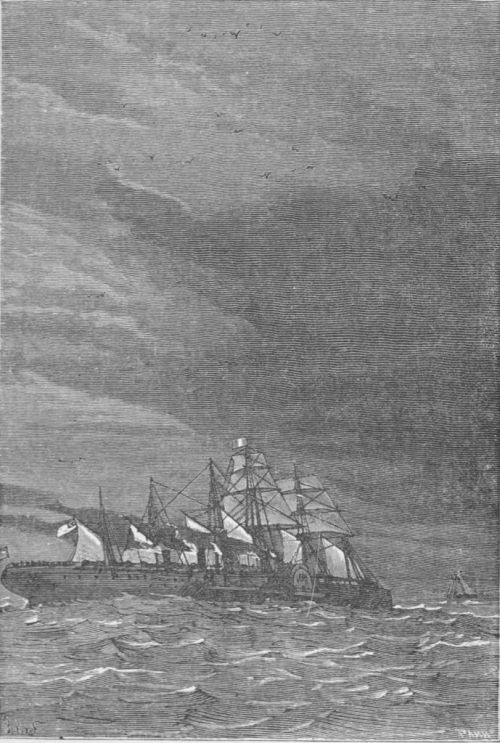 The frigate was considerably in advance of the “Dolphin.” It was evident from the volumes of black smoke issuing from her chimneys that she was getting up her steam. James Playfair was not the man to be left in the background.