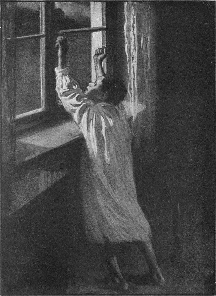 Eine Weile saß der Mann da und starrte dem Apfel nach. Dann blickte er auf; drüben vom offnen Fenster her ertönte Geräusch.