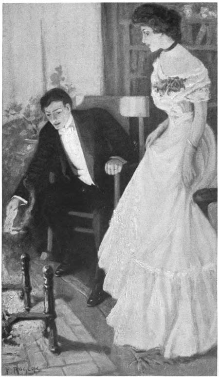 When she appeared she was dressed in white and with a single red rose at her breast. She held out her hand to him, silently; but her face was flushed and her eyes were shining. Never had he seen her more beautiful, and his admiration must have been plain to her, for she dropped her eyes quickly.