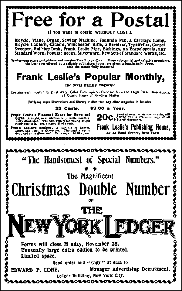 Send us your name and address and mention The Black Cat. These substantial and valuable
