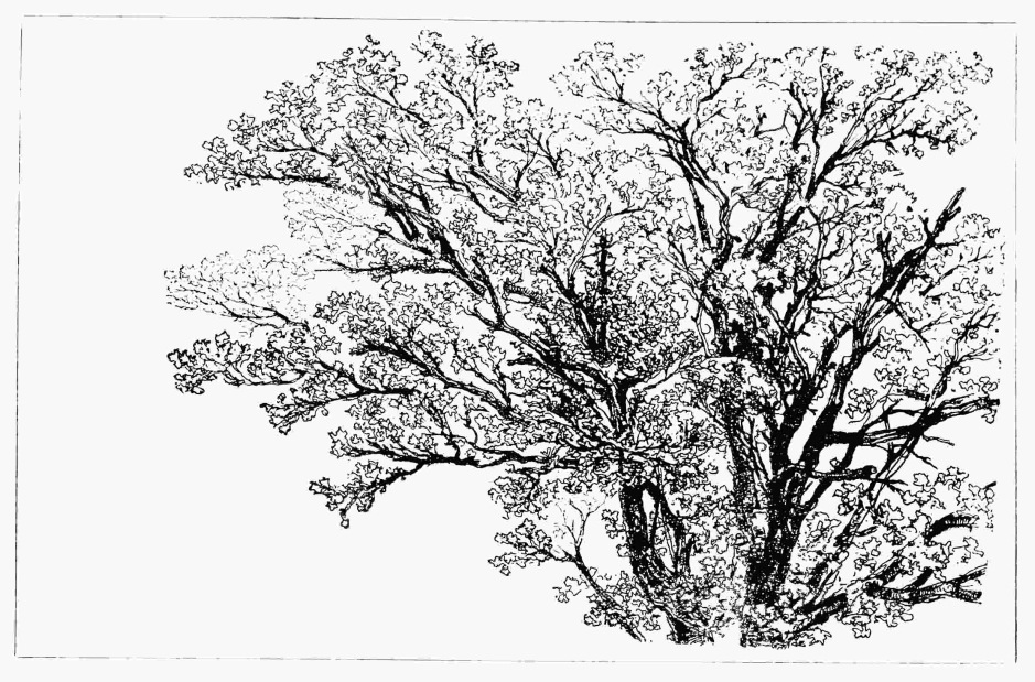 The days when they were executed were about the days of the Etching Club, a body which in its turn was followed by the Junior Etching Club. These clubs left us no legacy we care to inherit; their productions were for the most part fidgety, prim, at best desperately pretty and ridiculously elaborated, so that there was practically nothing in them of visible and expressive line. A little—just a little—of that visible line there was—there actually was, even in an unenlightened period—in those few trifling plates of Seymour Hade on which his first work was accomplished. He wrought nothing for many years afterwards. Then, in 1858, when Whistler, by this time his brother-in-law, was already busy, Seymour Haden—urged thereto by the knowledge of good work executed in France at that moment, and by a fitting reverence for the master etchings of Rembrandt—took up some coppers seriously; and he set down upon them, in this and the few following years, with an appreciation not less certain and immediate than Mr. Whistle of those laws to which etchings should conform, his powerful and personal impressions of English landscape, of the trout stream, and the stately river, of forest trees, a sunset over the Thames, of the yews and cedars of an English country-house (“Mytton Hall”), of the reflections, in some quiet{47}