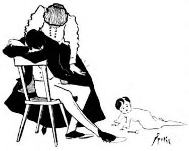 He had the child on his knee and was feeding it with scraps of his own breakfast, calmly confident that as the boy is father to the man that which is good for him at one point of his development must be beneficial all along the line. The baby was chipper and healthy, but exceedingly small, a fact used to shame his parents by the possessors of more stalwart off-spring.