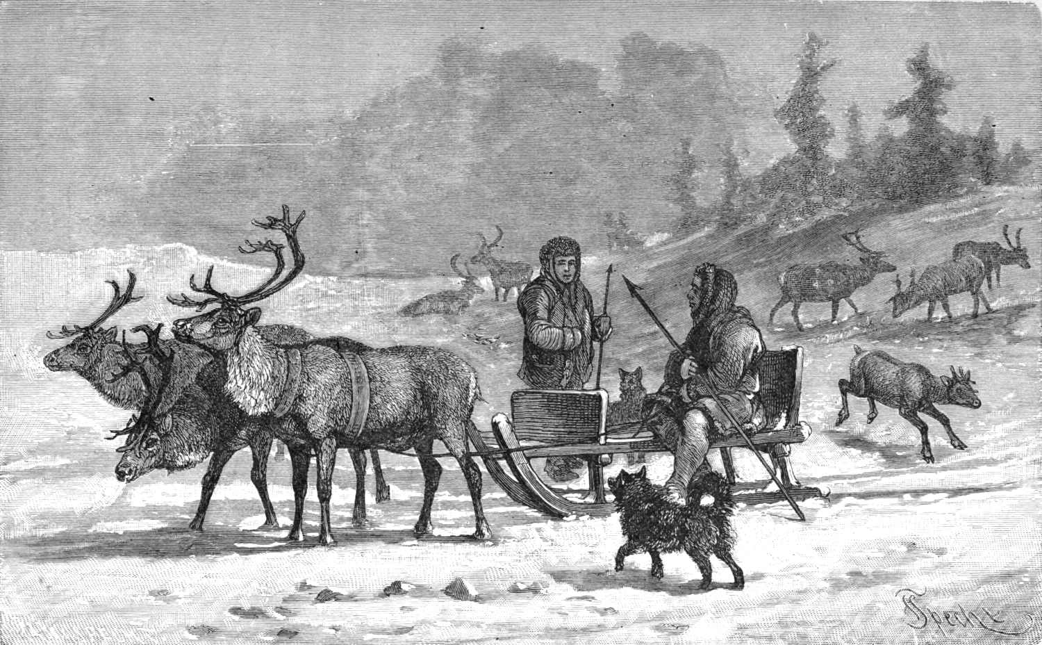 Wrangel describes migrations of thousands of reindeer in Eastern Siberia moving from the mountains to the forests, where they winter. He mentions his guide’s assertion that each body is led by a female of large size.
