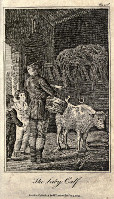 Ralph had now finished milking: and taking the little boys into the stable, he showed them a baby calf, as he called it, that was to be sold to the butcher the next day.