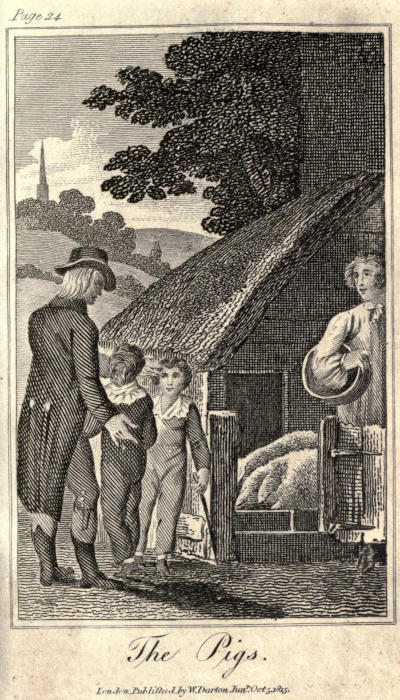 In the evening Mr. Mansfield led his grandsons into the yard, just at the time his man was giving the pigs their supper. Arthur and Charles were diverted at the eagerness with which the whole family squeaked and grunted over their food, which they devoured with the utmost haste, treading one over another as they scrambled for a share.