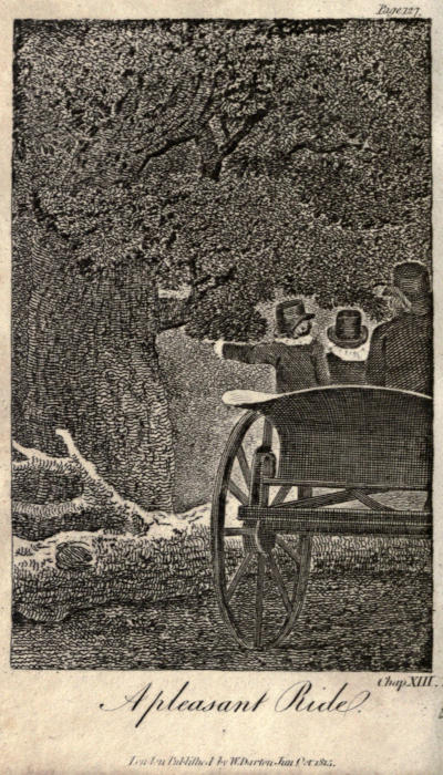 After they had travelled some miles, Mr. Mansfield informed them that they were then upon a new road, which a few years before had been[166] cut through a steep hill. “You observe,” said he, “that we have a high bank on each side of us, so that we seem to be almost buried between the two. The spot where we now are was formerly level with the top of the banks, and made a part of the same field with them; and the old road then went several miles further about, to avoid this hill. But now that the ground has been cut away so as to leave the road on a gentle ascent, coming this way saves time, and is less fatiguing to horses.”